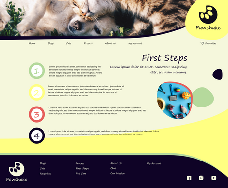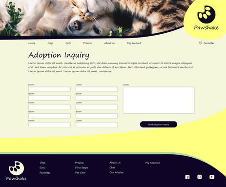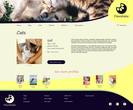 Based on the insights from the usability study, I made changes to improve the site’s menu and process screen. One of the changes I made was adding the dogs and cats option in the menu. This allowed users easily access to pet options. Also, pet options were added to the “about us” screen to show more pets and promote the adoption.