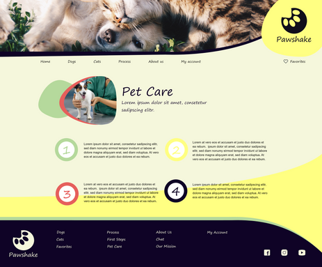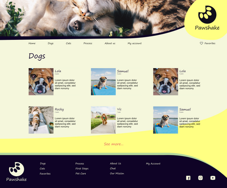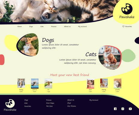 Pawshake is a website for an animal shelter where users can search different pets and apply for adoption.